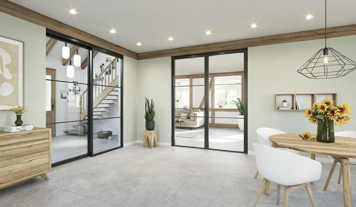 Stylische Glaselemente bringen nicht nur Helligkeit und Weite in ein Haus, sie verleihen auch jedem Raum einen ganz besonderen Charme. Durch ihre Lichtdurchlässigkeit und ihr transparentes Erscheinungsbild sorgen sie für helle, lichtdurchflutete Räume, was oft in Fluren, Küchen oder Wohnzimmern gewünscht ist.